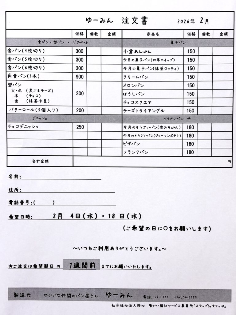 日頃よりゆーみんのパンをご愛顧いただき、誠にありがとうございます。