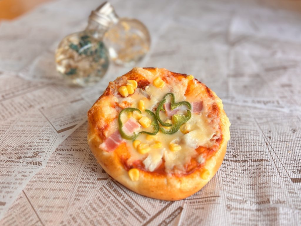 トッピングしたピザパンです。