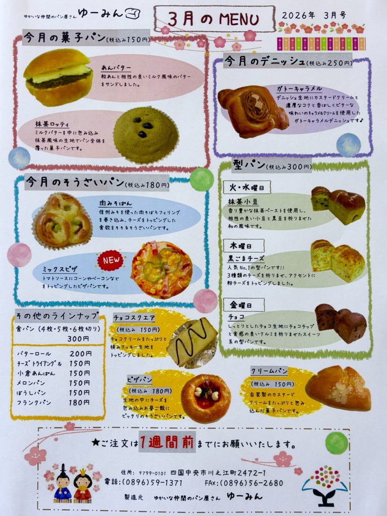 ゆーみん3月の商品紹介・デニッシュ販売終了のお知らせ